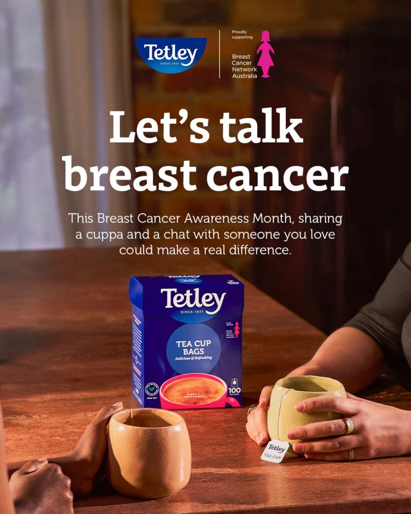 A new national campaign from tea brand Tetley in support of Breast Cancer Network Australia (BCNA) aims to change that through a simple chat over a cup of tea.