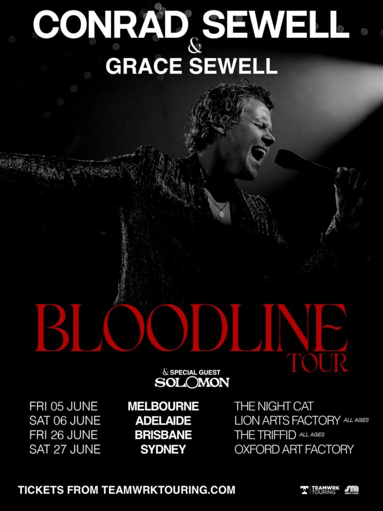 Sewell’s range of collaborations are vast. His upcoming tour, Bloodline, in June, will feature a special run of shows with his Grammy-nominated sister, Grace Sewell. In May 2015, Grace hit number one on the ARIA charts with her cover of Lesley Gore’s You Don’t Own Me, also later earning her a Grammy nomination as part of the Suicide Squad soundtrack. The same year, Sewell’s Start Again, described as a “gospel-tinged ballad”, landed him Song of the Year at the 2015 ARIA Music Awards and the top spot on the ARIA charts, making Conrad and Grace the first Australian-born siblings in the history of the charts (the first siblings since Janet and Michael Jackson) to hit number one as separate acts.